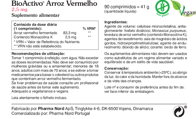 BioActivo® Arroz Vermelho 2,5 mg pode ser tomado em conjunto com qualquer outro suplemento da gama BioActivo®.