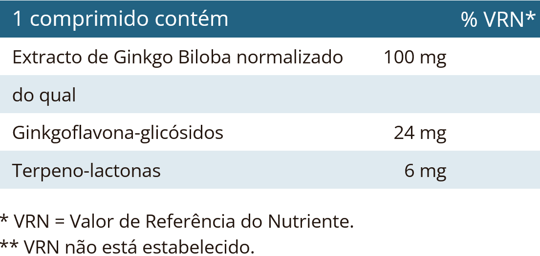 - Cada comprimido contém 24 mg de flavono-glicosídeos e 6 mg de terpeno-lactonas
