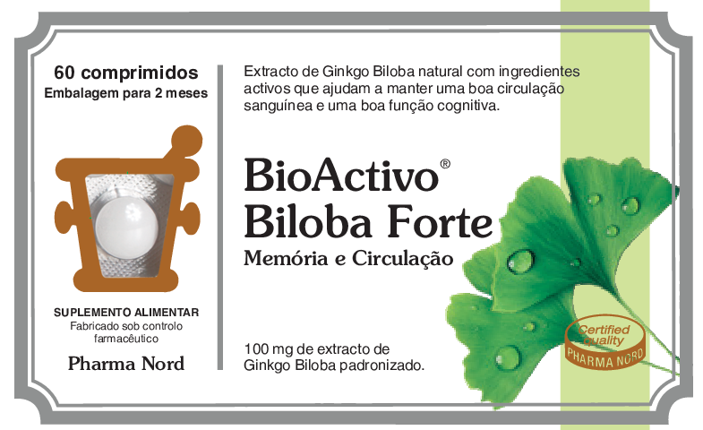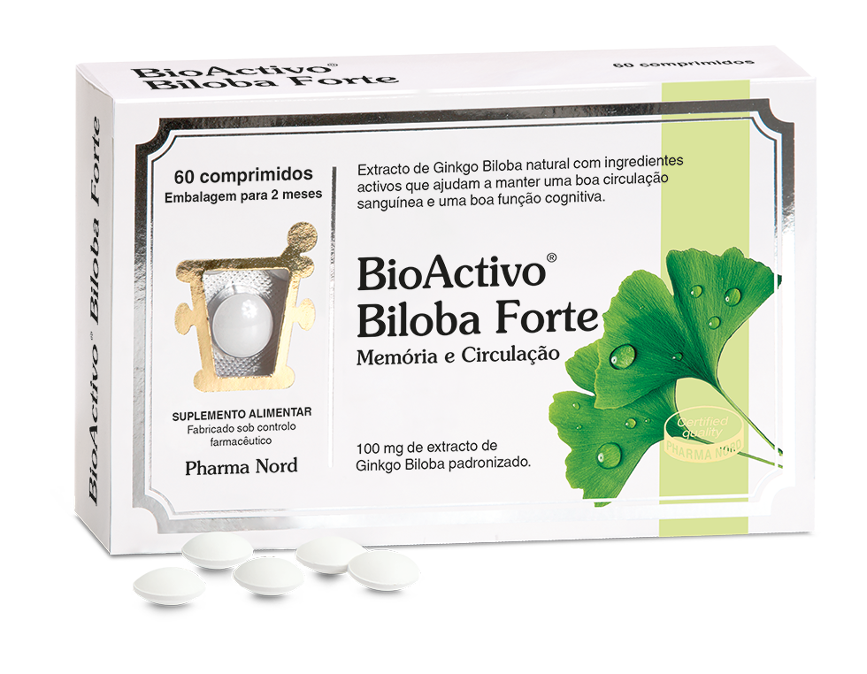 BioActivo® Biloba Forte contém extracto de Ginkgo Biloba que ajuda a manter uma boa circulação sanguínea e uma boa função cognitiva.