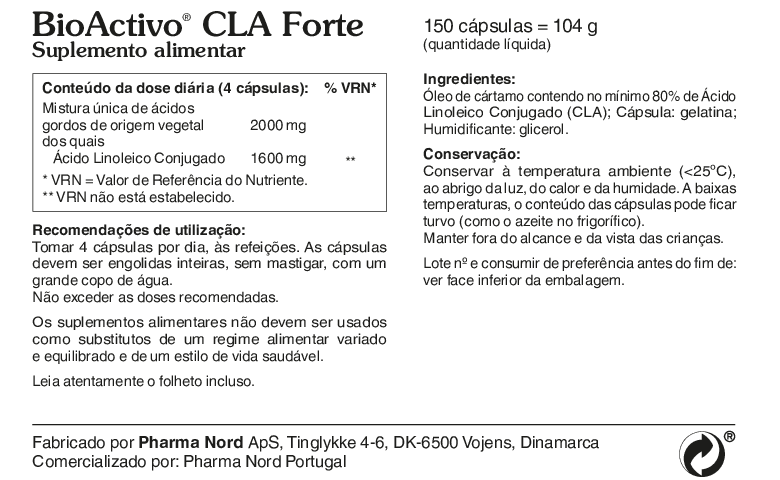 BioActivo ® CLA Forte pode ser tomado simultaneamente com qualquer outro produto da gama BioActivo ®
