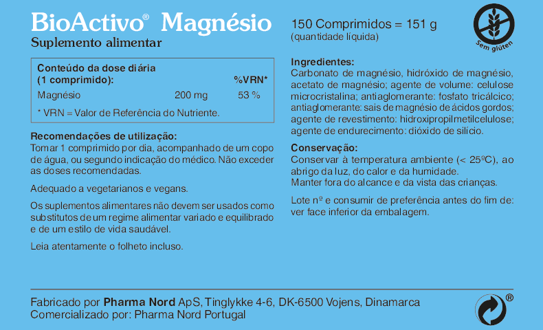 BioActivo® Magnésio contém 200 mg de fontes orgânicas e inorgânicas de magnésio (para uma absorção superior e uniforme) que contribui para o funcionamento normal dos músculos. Contribui para a manutenção de ossos e dentes normais.