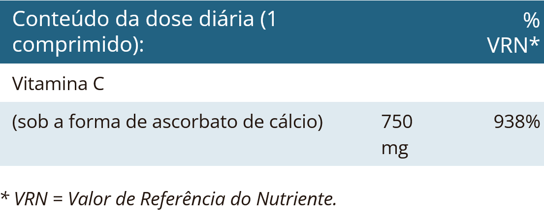 Vitamina C (sob a forma de L-ascorbato de cálcio) 750 mg
